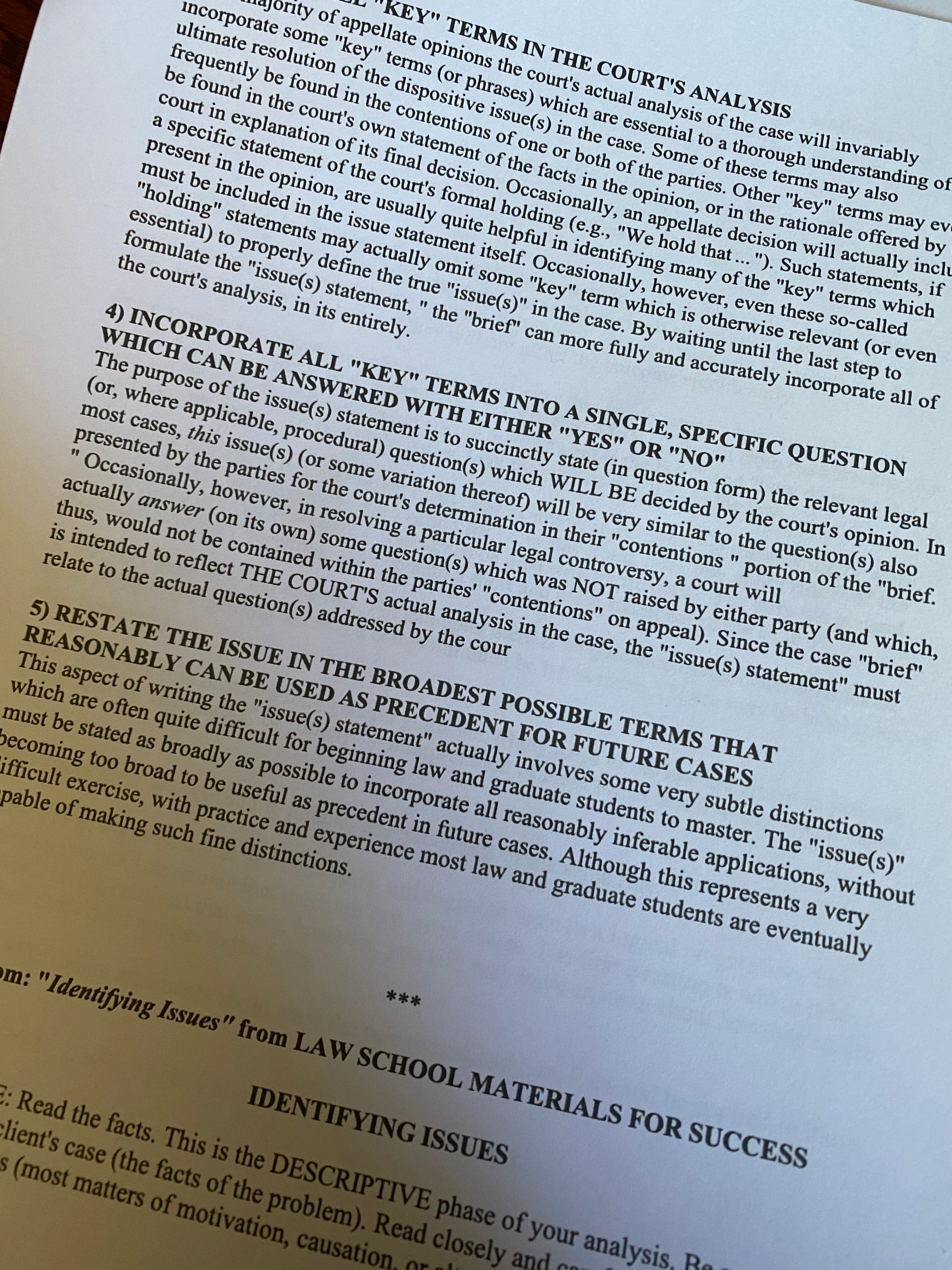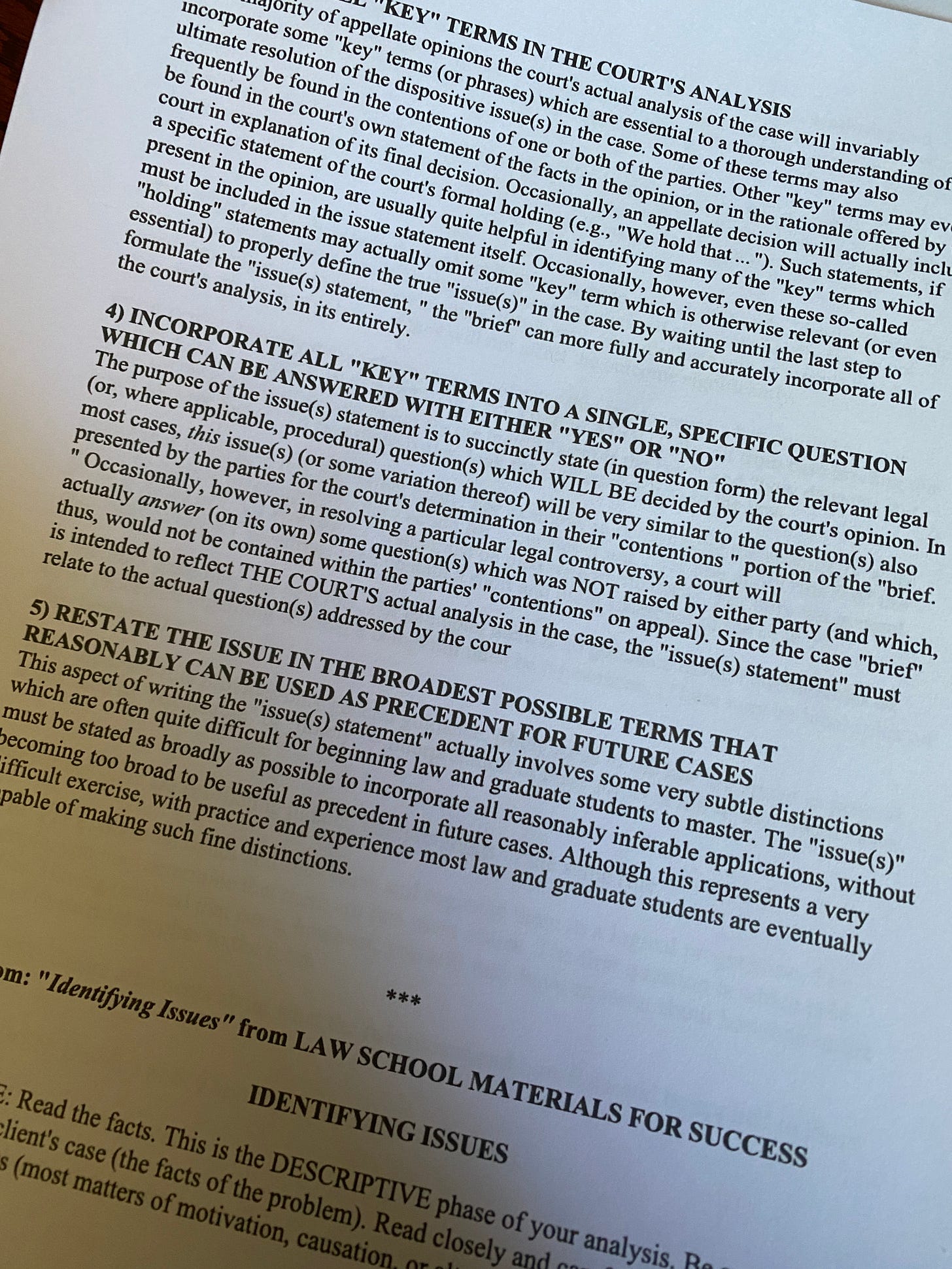 The professor intersperses lectures with a series of things they call the Skills Workshops. I’m new at this whole legal thing, so skills and workshops are right in my wheelhouse. Until I got to SKILLS WORKSHOP 4, all about how to write a case brief (something required in the first four classes I’ve taken, each professor demanding a different format for the purportedly individualized study guides). The purpose of SKILLS WORKSHOP 4, it says, is to show us how to write clear and concise case briefs.